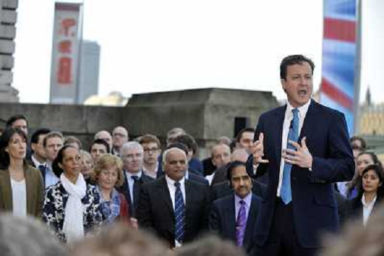 06/04/2010 Avvenimenti ITALY ONLY: Londra - DAVID CAMERON ( Leader del Partito Conservatore inglese) DURANTE UN COMIZIO DAV ...