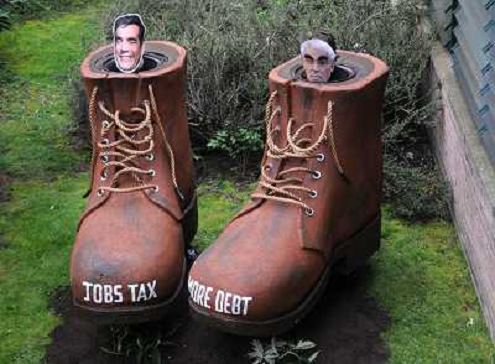 07/04/2010 Avvenimenti George OSBORNE, Ministro Ombra delle Finanze inglesi, mostra il poster della campagnia del Partito C ...