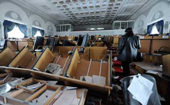 13/04/2010 Avvenimenti ITALY ONLY - BISHKEK: La sede del parlamento del Kirghizistan distrutta da vandali durante la sangui ...