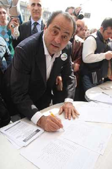 25/04/2008 Avvenimenti LEADER DEL PARTITO IDV ANTONIO DI PIETRO FIRMA REFERENDUM PROMOSSI DA BEPPE GRILLO PER LA LIBERA INF ...