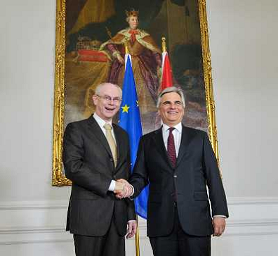 09/04/2014 Personaggi ITALY ONLY - Il cancelliere austriaco Werner Faymann con il presidente del Consiglio europeo Herman ...