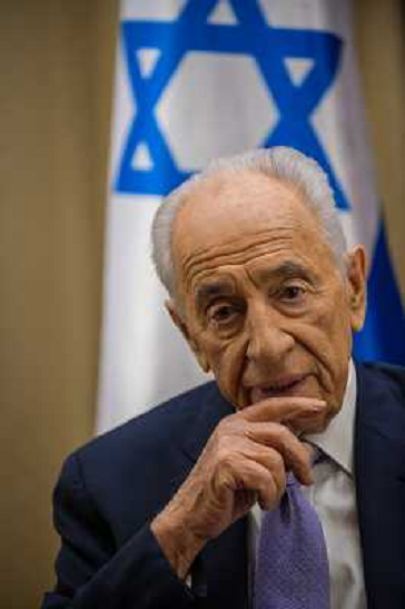 09/04/2014 Personaggi ITALY ONLY - Il presidente israeliano Shimon Peres in una intervista con i media cinesi a Gerusalemm ...