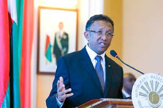 12/04/2014 Personaggi ITALY ONLY - Il presidente del Madagascar Hery Rajaonarimampianina fa il discorso alla conferenza st ...