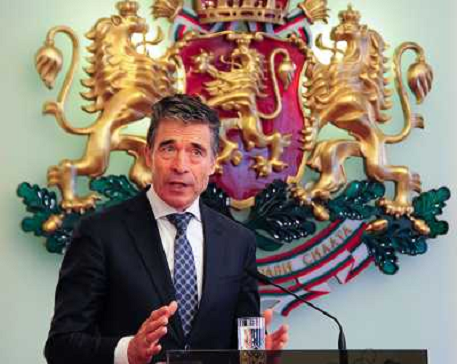 12/04/2014 Personaggi ITALY ONLY - Il Segretario generale della Nato Anders Fogh Rasmussen parla in una conferenza stampa ...