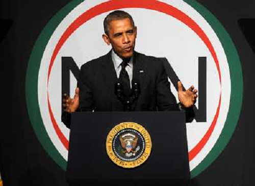 13/04/2014 Personaggi ITALY ONLY - Il presidente Barack Obama parla durante la Action Network National Convention 2014 She ...