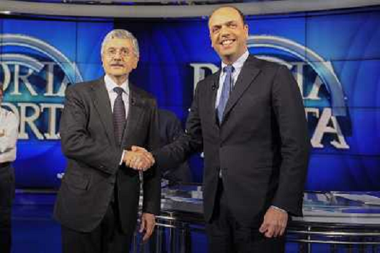 16/04/2014 Personaggi Roma-Massimo D'Alema e Angelino Alfano ospiti alla trasmissione Porta a Porta