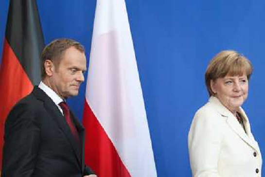 27/04/2014 Personaggi ITALY ONLY - Il cancelliere tedesco Angela Merkel incontra il Primo Ministro polacco Donald Tusk dur ...
