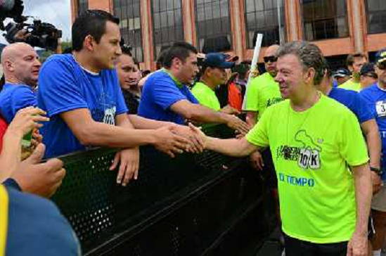 28/04/2014 Personaggi ITALY ONLY - Colombian President Juan Manuel Santos during the VII 10K Heroes Race in Bogota, Colomb ...