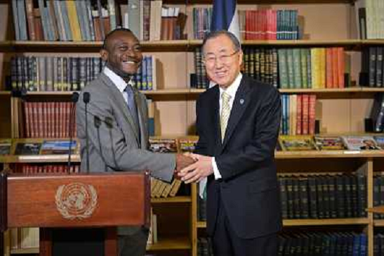 30/04/2014 Personaggi ITALY ONLY - il segretario generale delle Nazioni Unite Ban Ki-moon con Mesmin Dembassa Worogagoi, p ...