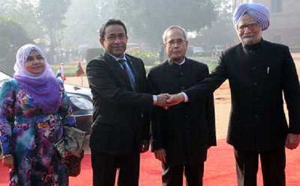 03/01/2014 Personaggi ITALY ONLY - l presidente indiano Pranab Mukherjee con il presidente delle Maldive Abdulla Yameen al ...