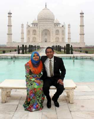 05/01/2014 Personaggi ONLY ITALY- AGRA, Jan. 4, 2014 () -- Maldivian president Abdulla Yameen and his wife pose for photos ...