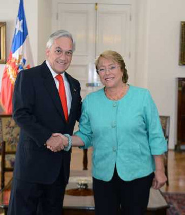 08/01/2014 Personaggi ITALY ONLY - Il presidente cileno Sebastian Pinera con il nuovo presidente eletto Michelle Bachelet ...