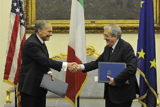 10/01/2014 Personaggi Il ministro Fabrizio Saccomanni e l'ambasciatore degli Stati Uniti in Italia, John R. Phillips, firm ...