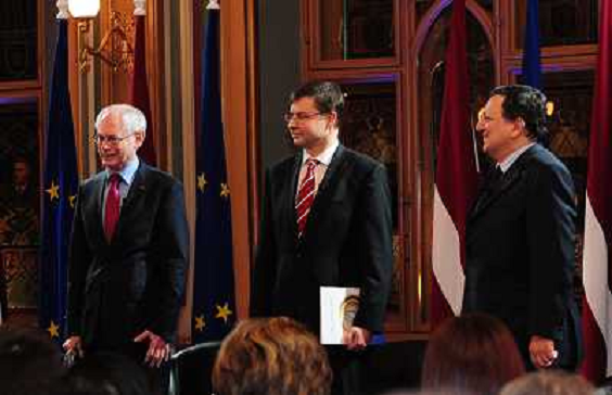 11/01/2014 Personaggi ITALY ONLY - Il primo ministro lettone Valdis Dombrovskis con presidente del Consiglio europeo Herma ...