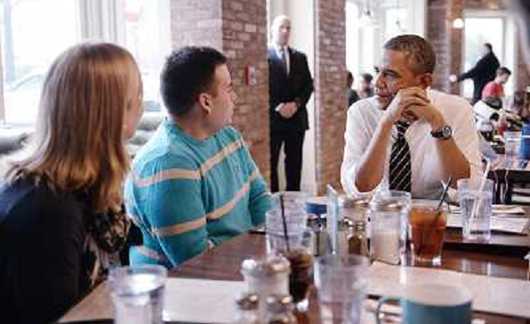 11/01/2014 Personaggi ITALY ONLY - Il Presidente degli Stati Uniti Barack Obama a pranzo con cinque giovani al ristorante ...