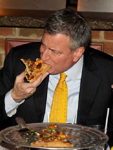 14/01/2014 Personaggi ITALY ONLY - Il sindaco Bill de Blasio mentre mangia una pizza al tavolo del Ristorante Goodfella Br ...