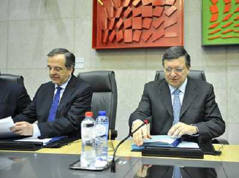 07/12/2013 Personaggi ITALY ONLY - Il primo ministro greco Antonis Samaras con il presidente della Commissione europea Jos ...