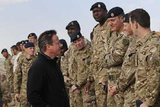 17/12/2013 Personaggi ITALY ONLY - Il primo ministro britannico David Cameron, in visitaparla ai soldati britannici a Camp ...