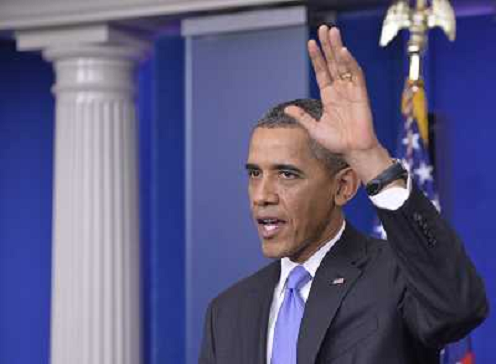 23/12/2013 Personaggi ITALY ONLY - Il presidente americano Barack Obama durante la conferenza stampa di fine anno alla Cas ...
