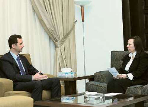 07/10/2013 Personaggi ITALY ONLY - Il presidente siriano Bashar al-Assad parla durante un'intervista con il giornale stata ...