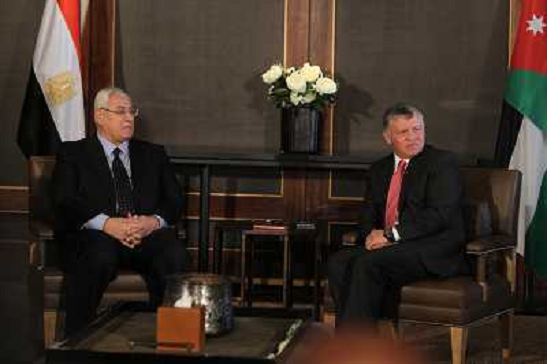 09/10/2013 Personaggi ITALY ONLY - Il re giordano Abdullah II e il presidente ad interim egiziano Adli Mansour presso AL-H ...