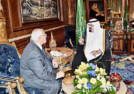 09/10/2013 Personaggi ITALY ONLY - Il presidente egiziano ad interim Adly Mansour con il re saudita Abdullah dopo il suo a ...