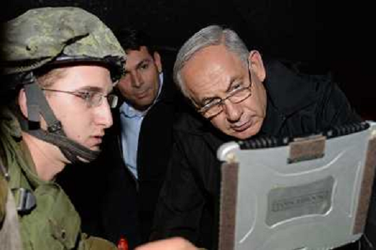 17/10/2013 Personaggi ITALY ONLY - Il primo ministro israeliano Benjamin Netanyahu in visita sulle alture del Golan, duran ...