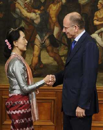 28/10/2013 Personaggi Il Premier Enrico Letta incontra la leader birmana Aung San Suu Kyi a palazzo Chigi Roma 28 ottobre ...