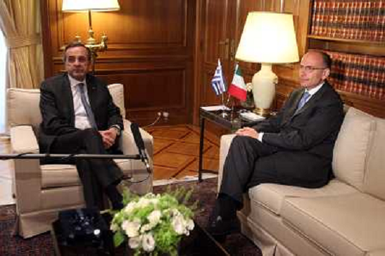 30/07/2013 Personaggi ITALY ONLY - Il primo ministro greco Antonis Samaras incontra il primo ministro italiano Enrico Lett ...
