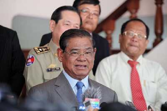 06/08/2013 Personaggi ITALY ONLY - Il Vice Primo Ministro e Ministro degli Interni della Cambogia Sar Kheng parla con i gi ...
