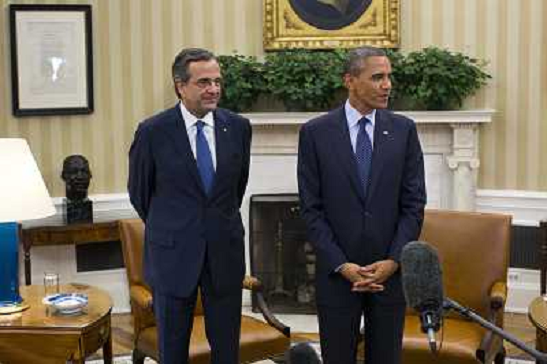 10/08/2013 Personaggi ITALY ONLY - Il Presidente americano Barack Obama incontra il primo ministro Greco Antonis Samaras ...