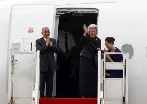 12/08/2013 Personaggi ITALY ONLY - Il Re cambogiano Norodom Sihamoni e sua madre, ex regina Norodom Monineath lasciano la ...