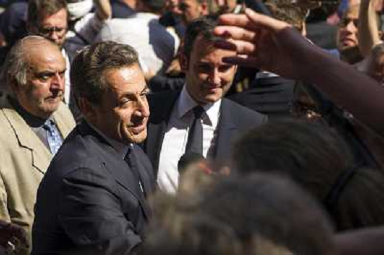 10/07/2013 Personaggi ITALY ONLY - L'ex presidente francese Nicolas Sarkozy arriva all'ingresso della sede dell'UMP a Pari ...