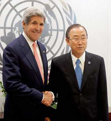 29/07/2013 Personaggi ITALY ONLY - Il segretario di Stato americano John Kerry e il Segretario Generale delle Nazioni Unit ...