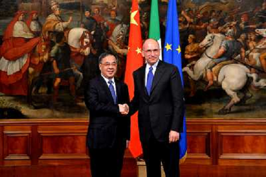 28/07/2013 Personaggi ITALY ONLY - Il primo ministro italiano Enrico Letta incontra Hu Chunhua, un membro dell'Ufficio Pol ...