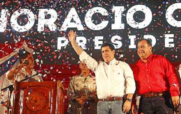 22/04/2013 Personaggi ITALY ONLY - L'imprenditore Horacio Cartes, candidato alla presidenza per il Partito Colorado, salut ...