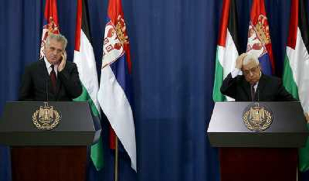 02/05/2013 Personaggi ITALY ONLY - Il presidente palestinese Mahmoud Abbas con il presidente serbo Tomislav Nikolic nella ...