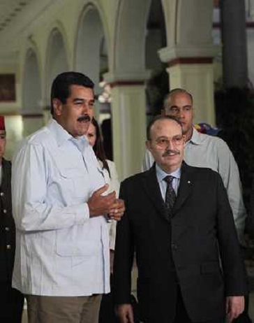 02/05/2013 Personaggi ITALY ONLY - Il presidente venezuelano Nicolas Maduro con il presidente della Pan American Sports Or ...