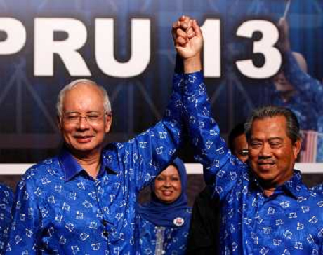 08/05/2013 Personaggi ITALY ONLY - Il primo ministro della Malesia Najib Razak festeggia dopo aver vinto le elezioni a Kua ...