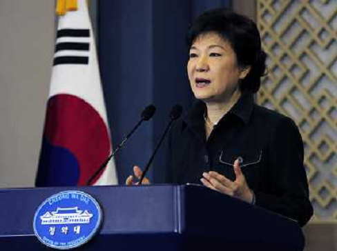 05/03/2013 Personaggi ITALY ONLY - Il presidente sud-coreano Park Geun-hye durante un discorso in tv alla nazione a Seoul, ...