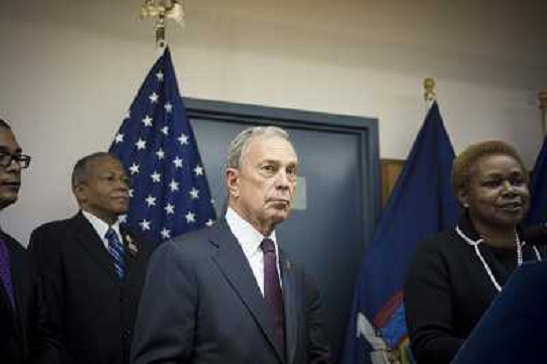 06/03/2013 Personaggi ONLY ITALY-NY Mayor Michael Bloomberg, center, at a news conference in 49-51 Chambers Street in New ...