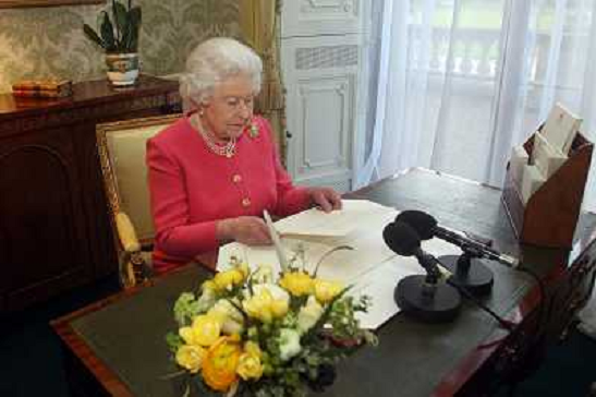 12/03/2013 Personaggi ONLY ITALY-Queen Elizabeth II delivers her Commonwealth Day message at Buckingham Palace in central ...