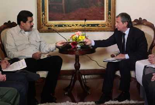 31/01/2013 Personaggi ITALY ONLY - Il Vice Presidente venezuelano Nicolas Maduro, con il presidente della compagnia petrol ...