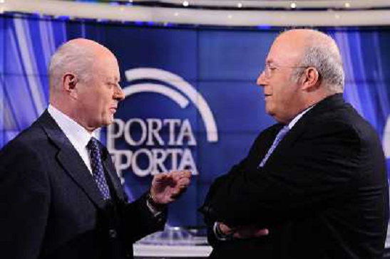 17/01/2013 Personaggi Roberto Maroni e Enrico Letta ospiti della strasmissione televisiva Porta a Porta - Roma 17/01/2013