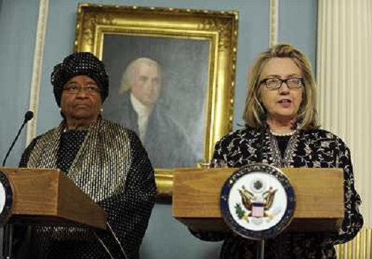 16/01/2013 Personaggi ITALY ONLY - Il segretario di Stato americano Hillary Clinton con il presidente della Liberia Ellen ...
