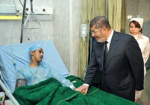 16/01/2013 Personaggi ITALY ONLY - Il presidente egiziano Mohamed Morsi visita i soldati rimasti feriti nell'incidente fer ...