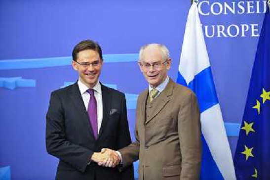 18/01/2013 Personaggi ITALY ONLY - Il Presidente del Consiglio europeo Herman Van Rompuy con il primo ministro finlandese ...