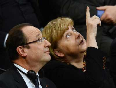 24/01/2013 Personaggi ITALY ONLY - Il cancelliere tedesco Angela Merkel con il presidente francese Francois Hollande parte ...