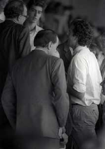 12/06/2023 Personaggi SILVIO BERLUSCONI CON BOBO CRAXI IN TRIBUNA A SAN SIRO NELL'ANNO 1986