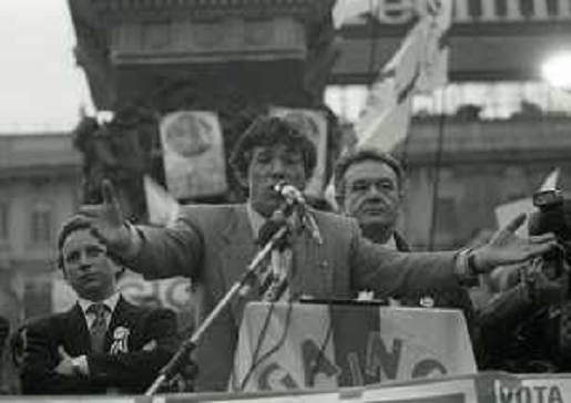 30/08/2022 Personaggi UMBERTO BOSSI IN PIAZZA DUOMO A MILANO IL GIORNO 16-04-1993